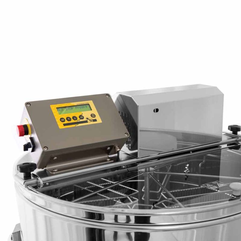 6-Waben Selbstwendehonigschleuder mit Motorantrieb 180W / 230V und vollautomatischer Steuerung. Sie hat einen integrierten Sicherheitsschalter, welcher den Motor bei Deckelöffnung automatisch abschaltet. Modernste Technik ermöglicht uns eine innovative Ausarbeitung des Honigschleuderbodens. Der Boden des Kessels ist nahtlos geschweißt und Richtung Auslauf geneigt. Die Schleuder hat zwei rostfreie Quetschhähne 6/4'', einer ist am tiefst möglichen Punkt eingebaut, damit der gesamte Honig aus der Honigschleuder abfließen kann. Alle Teile der Honigschleuder, die mit dem Honig in Berührung kommen, bestehen aus lebensmittelzugelassenen Materialien. Der Deckel ist aus durchsichtigem Acrylglas.